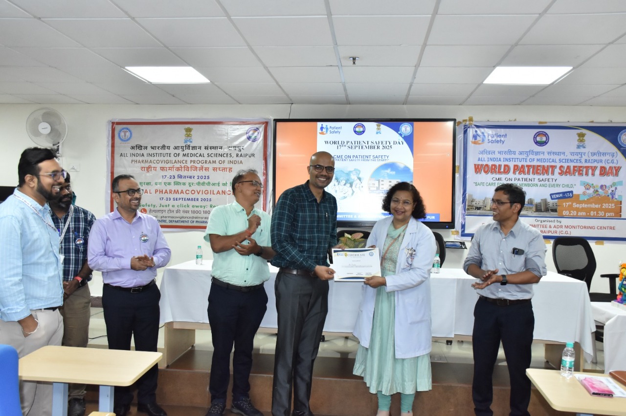 Raipur (thestates.news) | All India Institute of Medical Science (AIIMS) Raipur observed World Patient Safety Day with a one-day Continuing Medical Education (CME) programme, placing special focus on “Safe Care for Every Newborn and Every Child” and “Your Safety, Just a Click Away: Report to PvPI.” The initiative underscored the institute’s commitment to strengthening patient safety practices and embedding a culture of accountability in healthcare delivery.