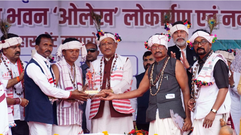 CM Shri Sai said these meaningful initiatives will usher in a wave of development in tribal areas and enable tribal communities to march ahead on the path of progress. He made these remarks while addressing the divisional-level Nuakhai Milan of the Dhurwa Samaj and the inauguration of the newly built community hall “Olekh” at the Forest School campus in Jagdalpur. On the occasion, CM Sai announced ₹75 lakh for the construction of five domes for the Dhurwa Samaj at different locations, each to be built at a cost of ₹15 lakh. He also assured approval of development proposals submitted by 36 sarpanches of the community’s gram panchayats.