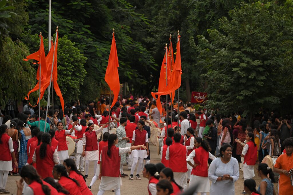 The farewell procession commenced from the Institute of Design premises with a captivating performance by the university’s traditional ‘Shivray’ dhol troupe. The event was graced by Registrar Dr. Mahesh Chopde, Director of Sports Prof. Padmakar Phad, Director of Student Welfare Dr. Suraj Bhoyar, along with several faculty members from different departments.