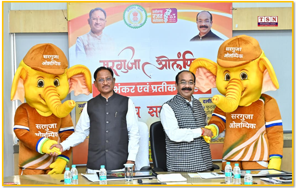 Raipur (thestates.news) | Chief Minister Shri Vishnu Deo Sai on Wednesday unveiled the logo and mascot ‘Gajru’ of the Surguja Olympics, to be organised on the lines of the Bastar Olympics, at a dignified ceremony held at Mahanadi Bhavan, Mantralaya. Extending his greetings to the people of the Surguja region, Chief Minister said that, like Bastar, Surguja’s sporting talent would now receive a strong and structured platform to showcase its potential.