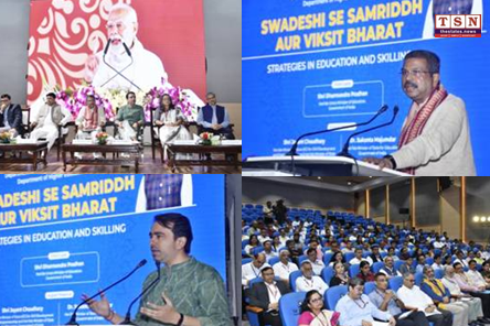 In pursuance of the Prime Minister’s call for a Viksit Bharat, the Ministry of Skill Development & Entrepreneurship (MSDE) and the School and Higher Education Departments of Ministry of Education (MoE) convened a joint high-level interaction today at Kaushal Bhawan, New Delhi. The deliberations were held under the overarching theme “Swadeshi Se Samriddha aur Viksit Bharat – Strategies in Education and Skilling”, with the objective of preparing a forward-looking roadmap for an Aatmanirbhar Bharat.
